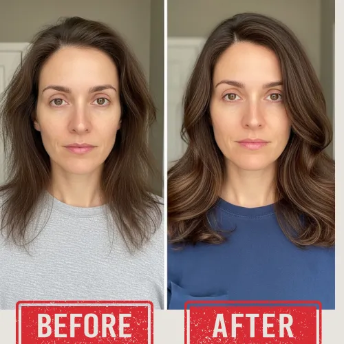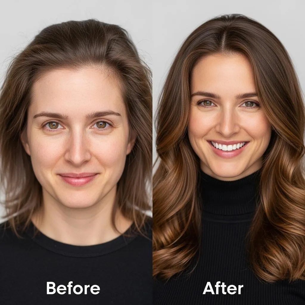 Noticeably thicker, fuller hair that you can style with confidence - getting compliments again instead of worried questions