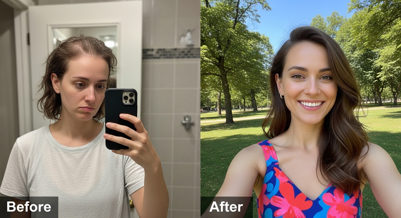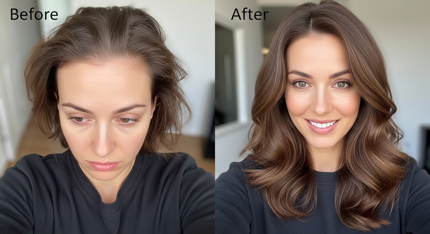 Noticeably thicker, fuller hair that you can style with confidence - getting compliments again instead of worried questions